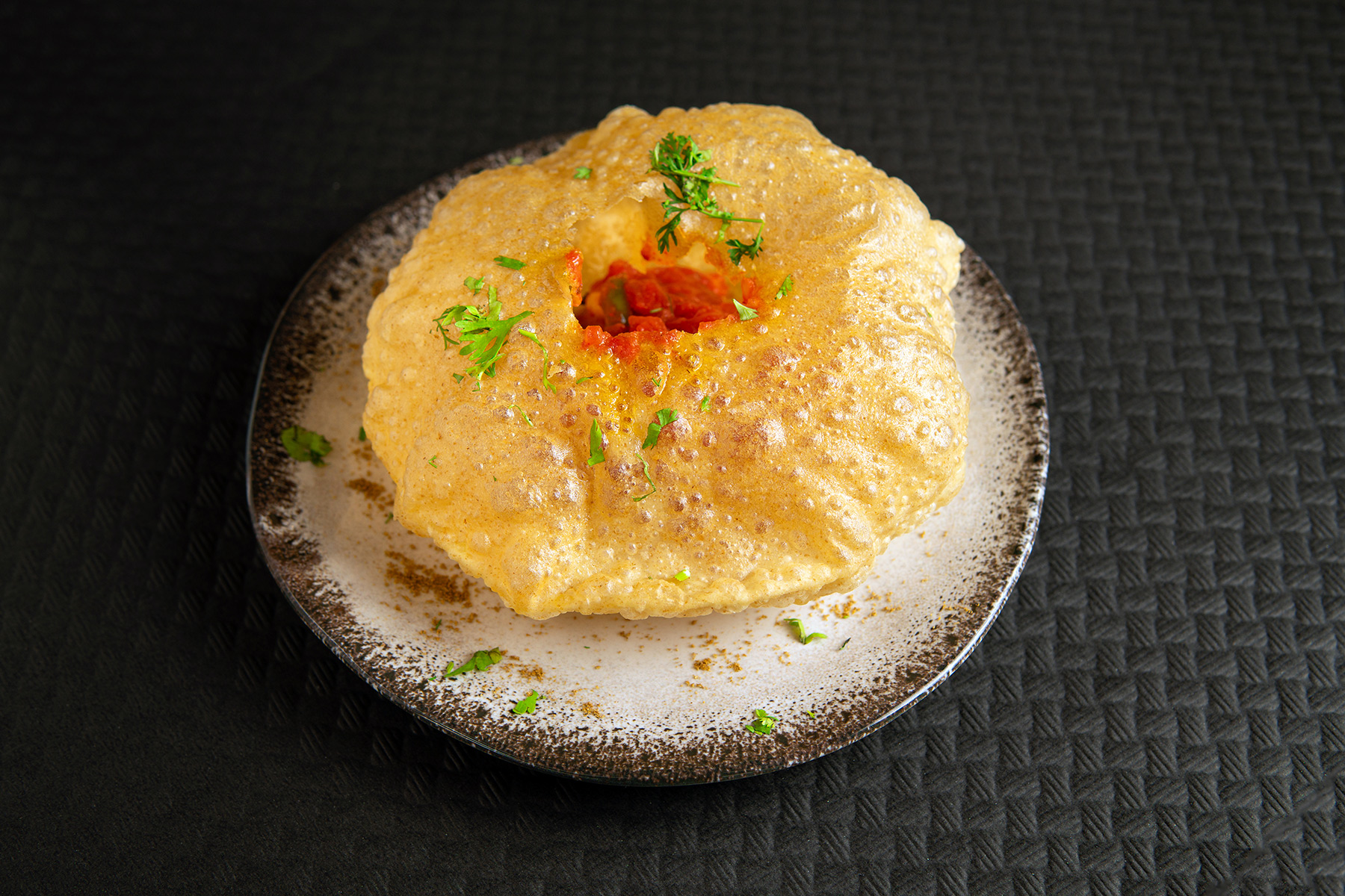 Poori con langostinos